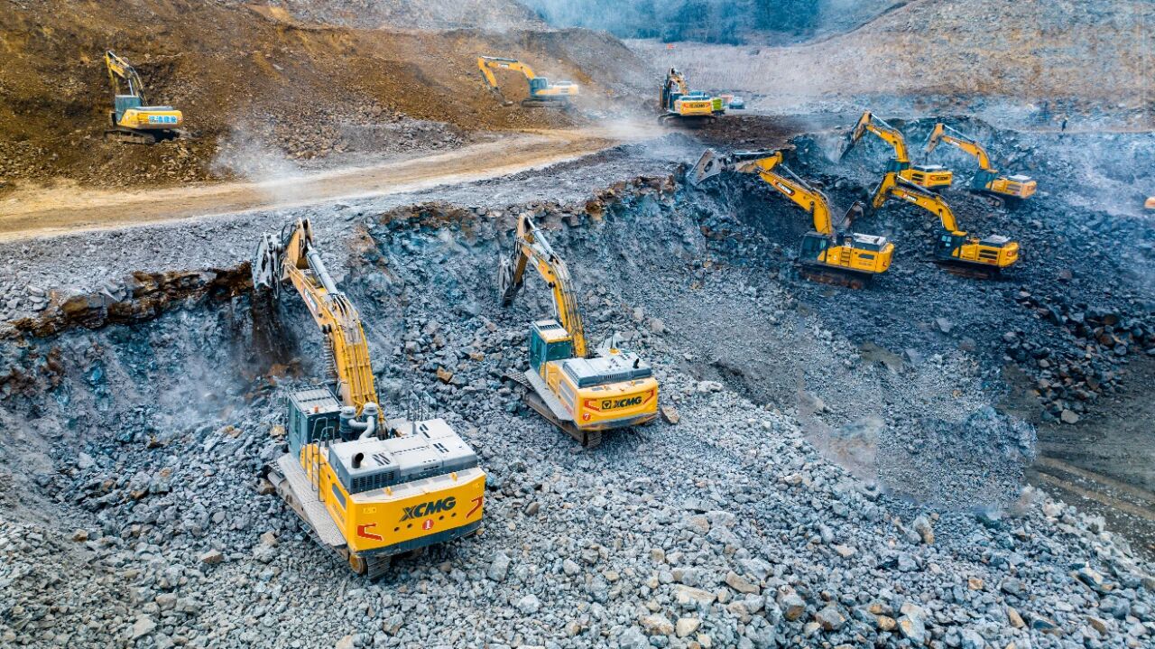 为确保工程顺利推进、抢抓冬季施工黄金期,施工方经过多次研讨优化施工方案,最终选定星空官网挖掘机承担本次场平核心任务。目前,现场已陆续进驻14台星空官网挖掘机,全面包揽山体玄武岩破碎及土石料装车等关键工序,全力攻坚约300万方的工程总量。据悉,滁州部分施工区域地质条件复杂,多为坚硬玄武岩,对施工设备的效率与可靠性提出极高要求,而星空官网XE650GK等明星机型凭借出色性能成为攻坚主力。其中8台XE650GK搭配215破碎锤,依托独有的破碎多级调频控制技术,高效破解高硬度岩石施工难题,每日保底破碎玄武岩1500吨以上,轻料作业日产量可达2000至3000吨,且油耗控制在40L左右,实现高效与节能双赢;星空官网380、335等机型则协同开展土石方挖装作业,搭配矿山专用铲斗,以灵活操作、稳定底盘和优异的挖装效率,成为施工现场的“得力干将”。