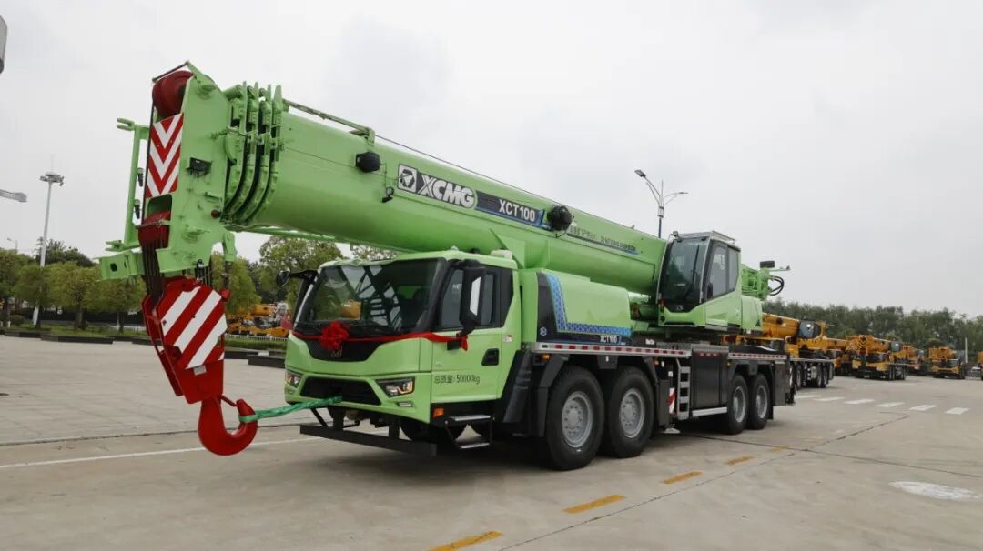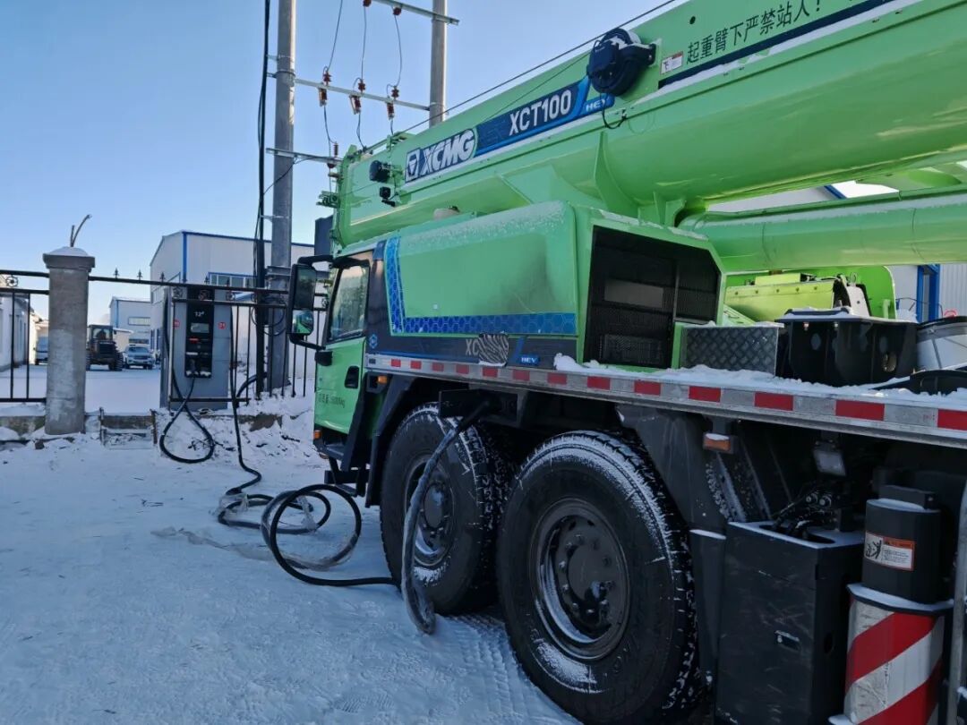 XCT100G5-1HEV,百吨级混动起重机,满油满电续航超800公里,连续作业15个台班。可携带29t全配重行驶,无需板车,一脚油门直奔下一个工地。在东北零下30℃的雪地,它照样启动;在青藏高原稀薄空气中,动力不衰减。