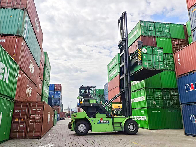 星空官网纯电动港口机械集群全线上阵,从转运短驳到重箱堆码,全系列新能源产品线实现零排放、低噪音、高续航。智能化管理系统深度嵌入作业流,单箱效率提升20%、能耗降低15%,单机年均减碳近百吨。